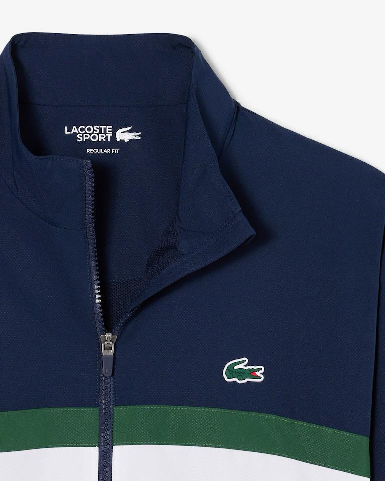 علامة رياضية وأنيقة منذ عام 1933، تكشف لاكوست عن طقم رياضي يعكس رموزها المميزة. صُنع من قماش التافيتا الماسي، وهو خامة خفيفة ومسامية تحمل توقيع العلامة ومزودة بمعالجة مقاومة للماء، ويتميز بتصميم Color Block الأيقوني مع طبعة تمساح كبيرة. اختيار مثالي لإطلالة رياضية جريئة وواضحة.