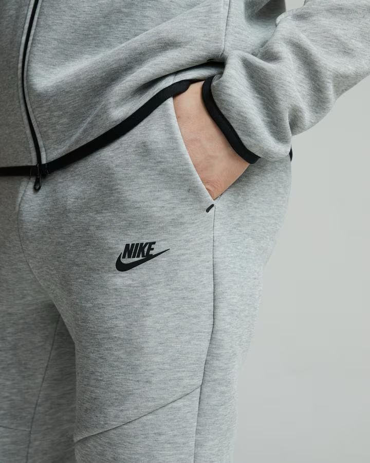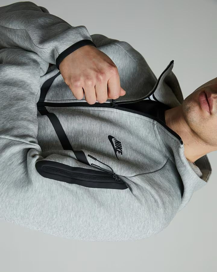 Tech Fleece باللون الرمادي المفتوح (Heather Grey)، وهو اللون الأكثر مبيعاتاً وكلاسيكية فـ هاد الماركة.