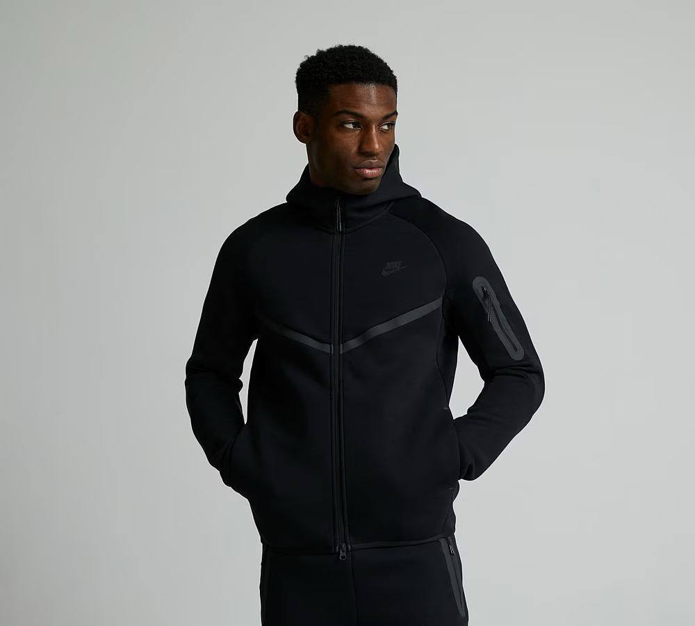 فيها سنسلة كاملة واللوغو ديال نايك فـ الصدر بالأسود (باهت شوية باش يجي متناسق).